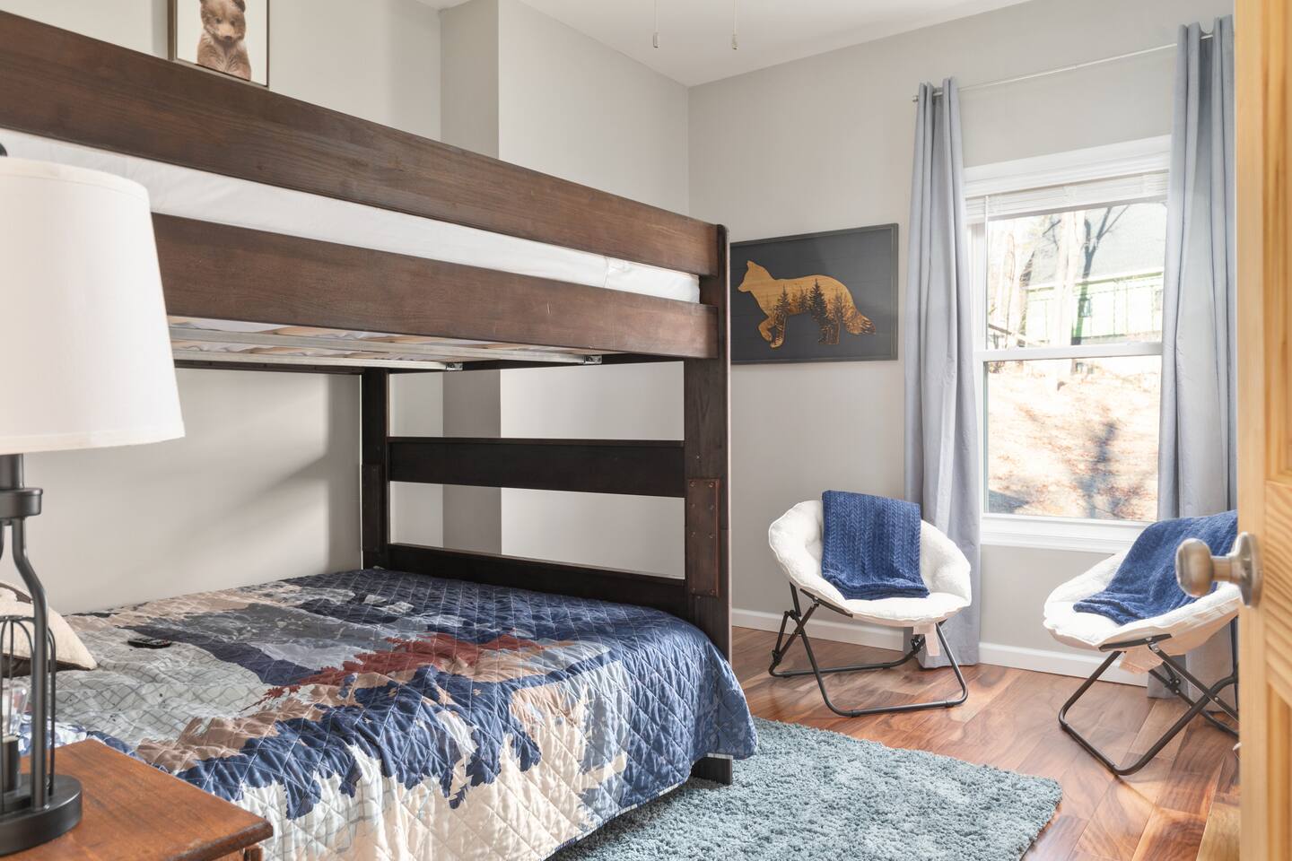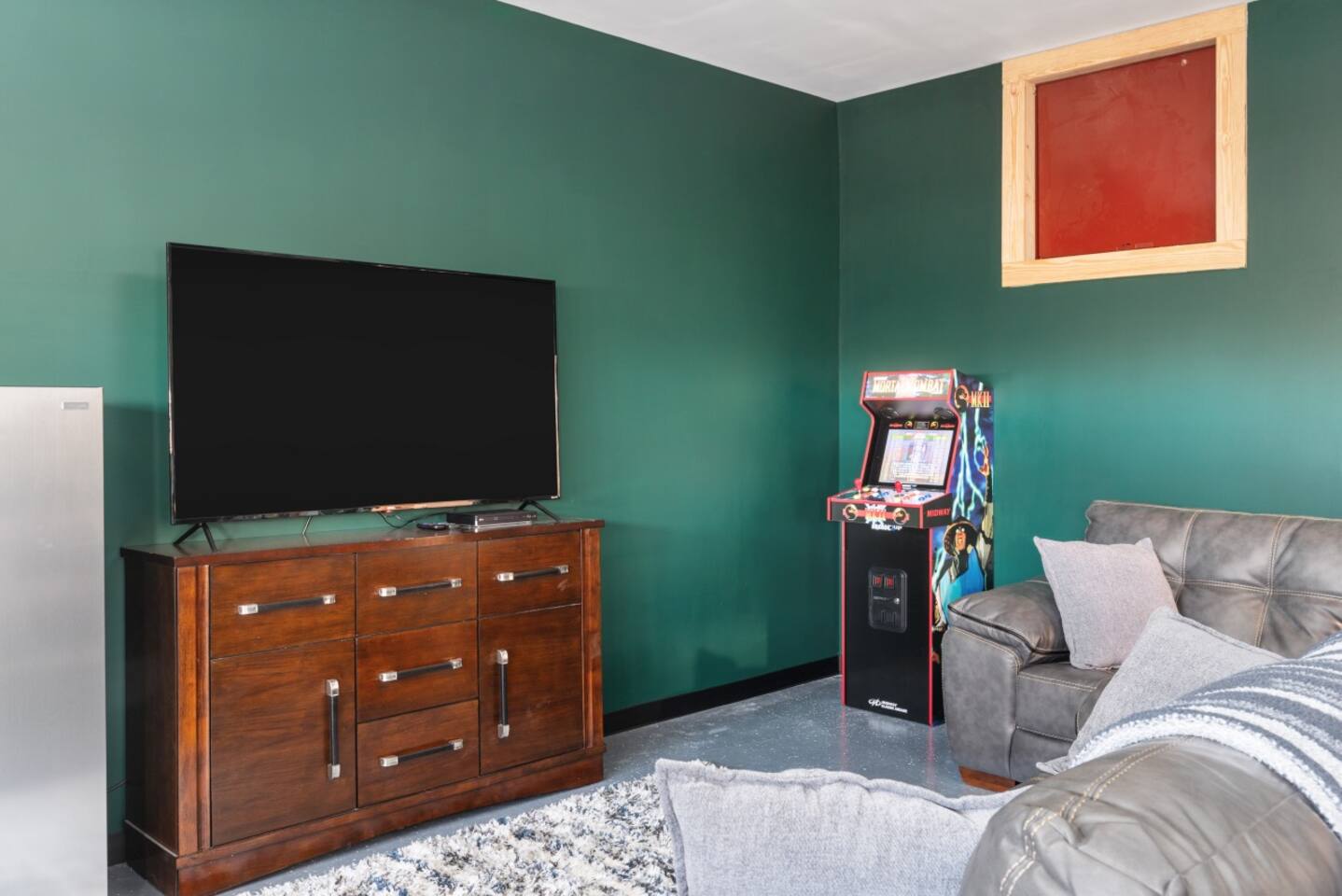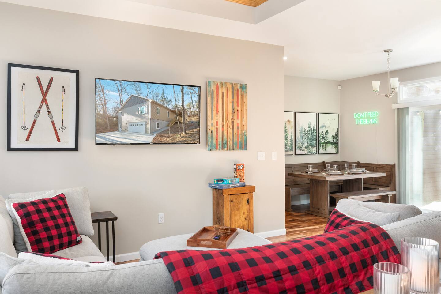 Nestled in the beautiful Shenandoah Valley in Basye, VA, just minutes from Bryce Resort, Black Bear Bungalow is the perfect escape for families, friends, and adventure enthusiasts. This 3-bedroom retreat combines cozy comfort with exciting entertainment and stunning natural scenery. Outdoor Bliss • Relax under the stars around the Solo Stove firepit. • Grill delicious meals on the spacious back deck with the gas BBQ. Comfort Meets Functionality • Prepare meals in the fully equipped kitchen. • Rest peacefully in the luxurious King bed, cozy Queen bed, or stylish Queen bunk beds. • Stay productive with a dedicated desk and free high-speed Wi-Fi. Epic Game Room The garage transforms into an entertainment hub: • 65” Roku TV for movie nights or sports. • Infinity Game Table with interactive board and video games. • Mortal Kombat arcade machine with over ten retro classics. • Soft-touch axes for hours of fun. • A mountain mural perfect for Insta-worthy photos. Relax After Your Adventures After skiing, golfing, hiking, or biking: • Rest in one of three cozy bedrooms with plush bedding. • Gather around the fire and share stories about your day. Prime Location • Minutes from Bryce Resort for skiing, golf, mountain biking, and Lake Laura. • Discover nearby wineries, trails, and the scenic Shenandoah Valley. Whether you seek peaceful mountain evenings or action-filled days, Black Bear Bungalow is the ideal home base for creating unforgettable memories. Book now and start your adventure!