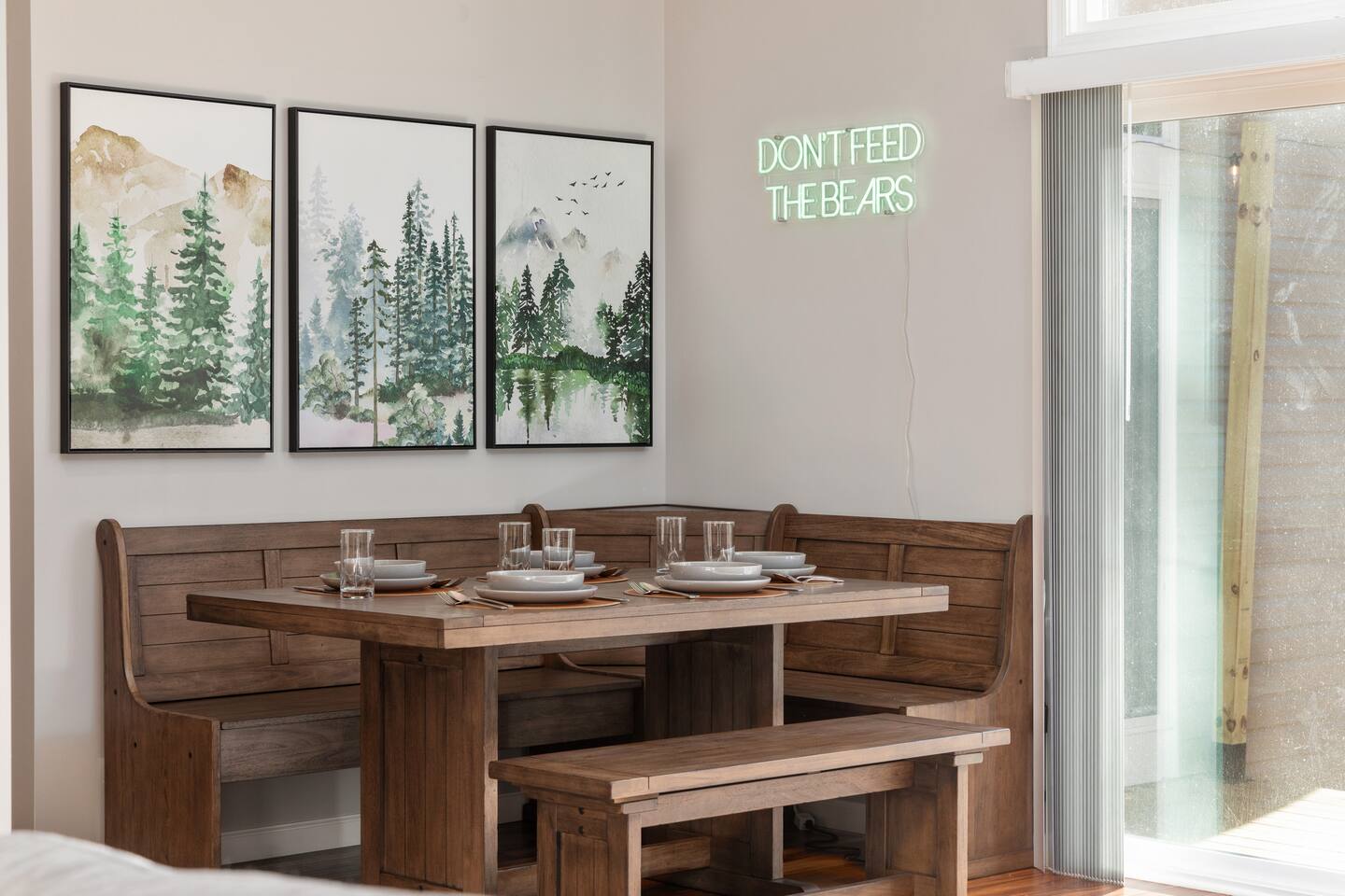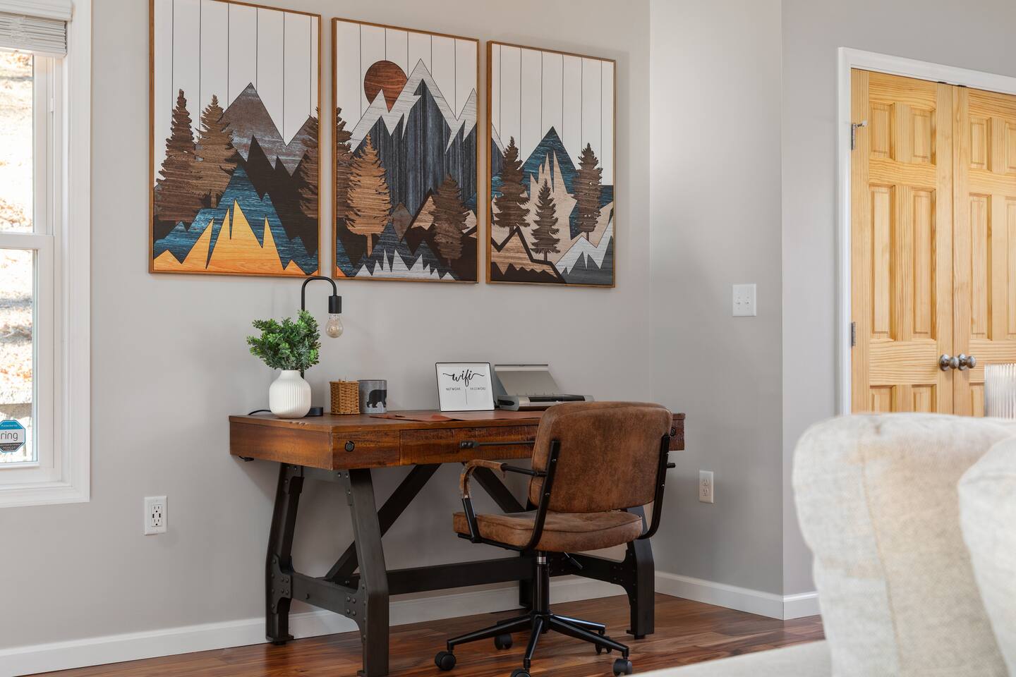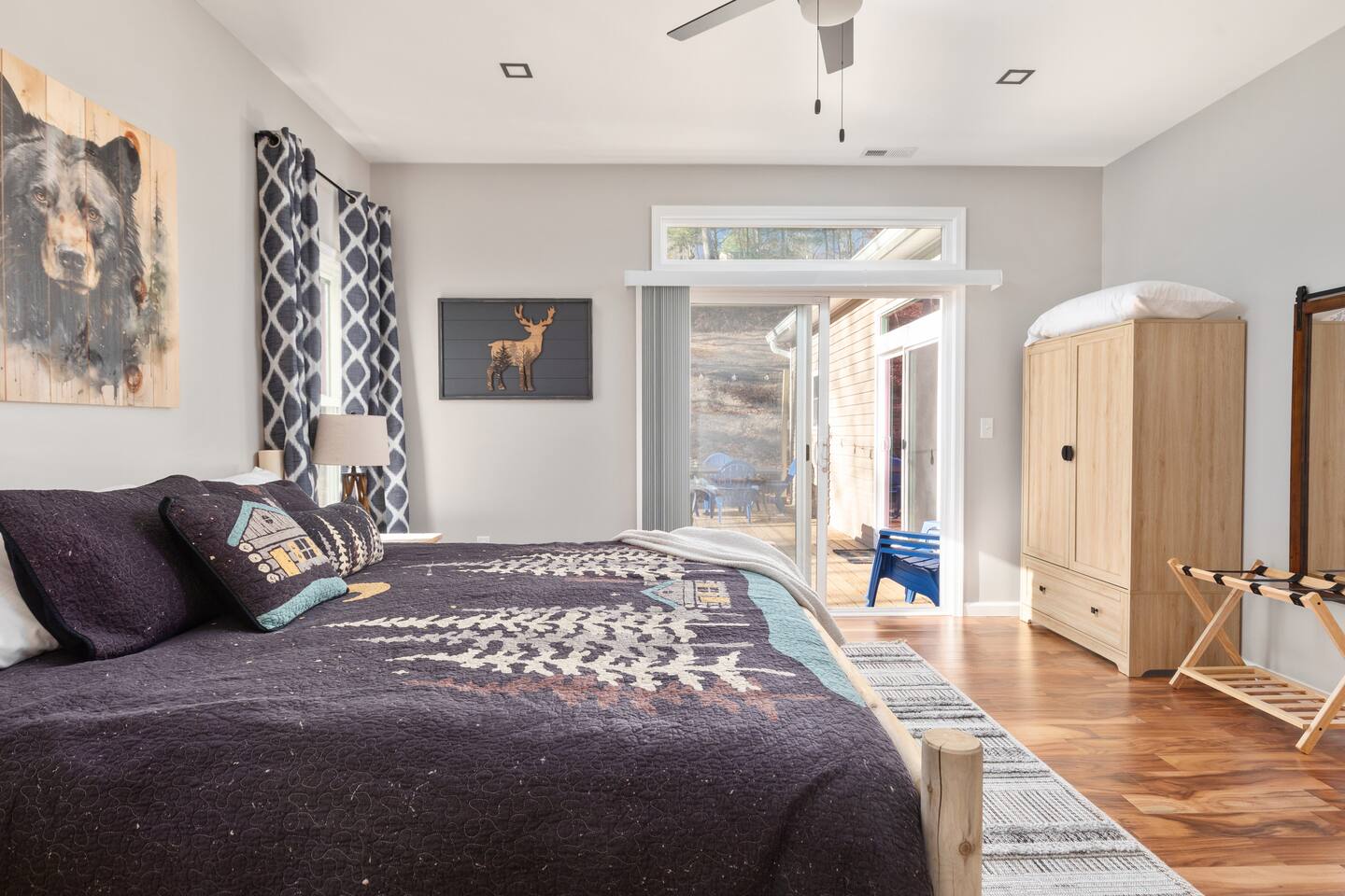 Nestled in the beautiful Shenandoah Valley in Basye, VA, just minutes from Bryce Resort, Black Bear Bungalow is the perfect escape for families, friends, and adventure enthusiasts. This 3-bedroom retreat combines cozy comfort with exciting entertainment and stunning natural scenery. Outdoor Bliss • Relax under the stars around the Solo Stove firepit. • Grill delicious meals on the spacious back deck with the gas BBQ. Comfort Meets Functionality • Prepare meals in the fully equipped kitchen. • Rest peacefully in the luxurious King bed, cozy Queen bed, or stylish Queen bunk beds. • Stay productive with a dedicated desk and free high-speed Wi-Fi. Epic Game Room The garage transforms into an entertainment hub: • 65” Roku TV for movie nights or sports. • Infinity Game Table with interactive board and video games. • Mortal Kombat arcade machine with over ten retro classics. • Soft-touch axes for hours of fun. • A mountain mural perfect for Insta-worthy photos. Relax After Your Adventures After skiing, golfing, hiking, or biking: • Rest in one of three cozy bedrooms with plush bedding. • Gather around the fire and share stories about your day. Prime Location • Minutes from Bryce Resort for skiing, golf, mountain biking, and Lake Laura. • Discover nearby wineries, trails, and the scenic Shenandoah Valley. Whether you seek peaceful mountain evenings or action-filled days, Black Bear Bungalow is the ideal home base for creating unforgettable memories. Book now and start your adventure!